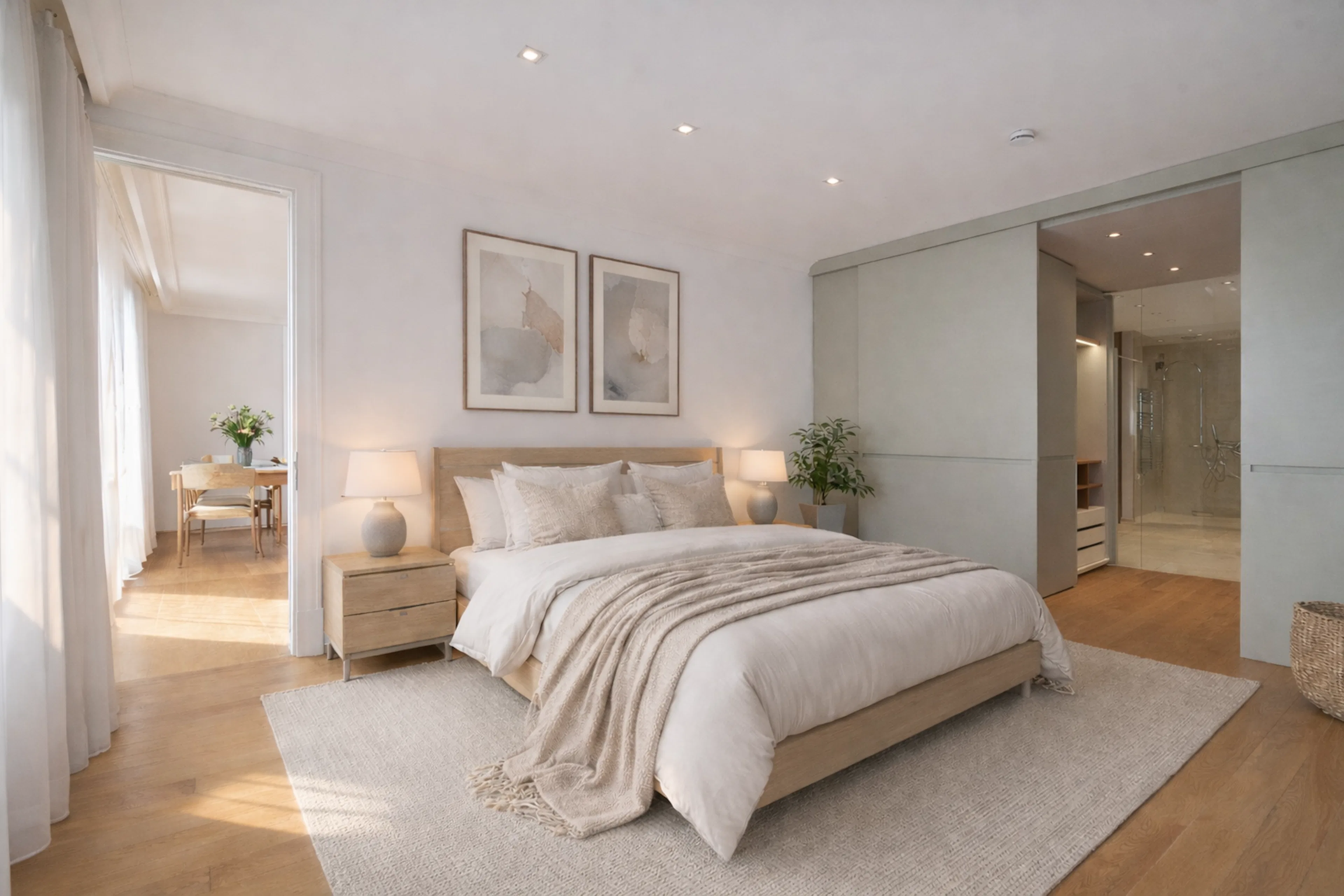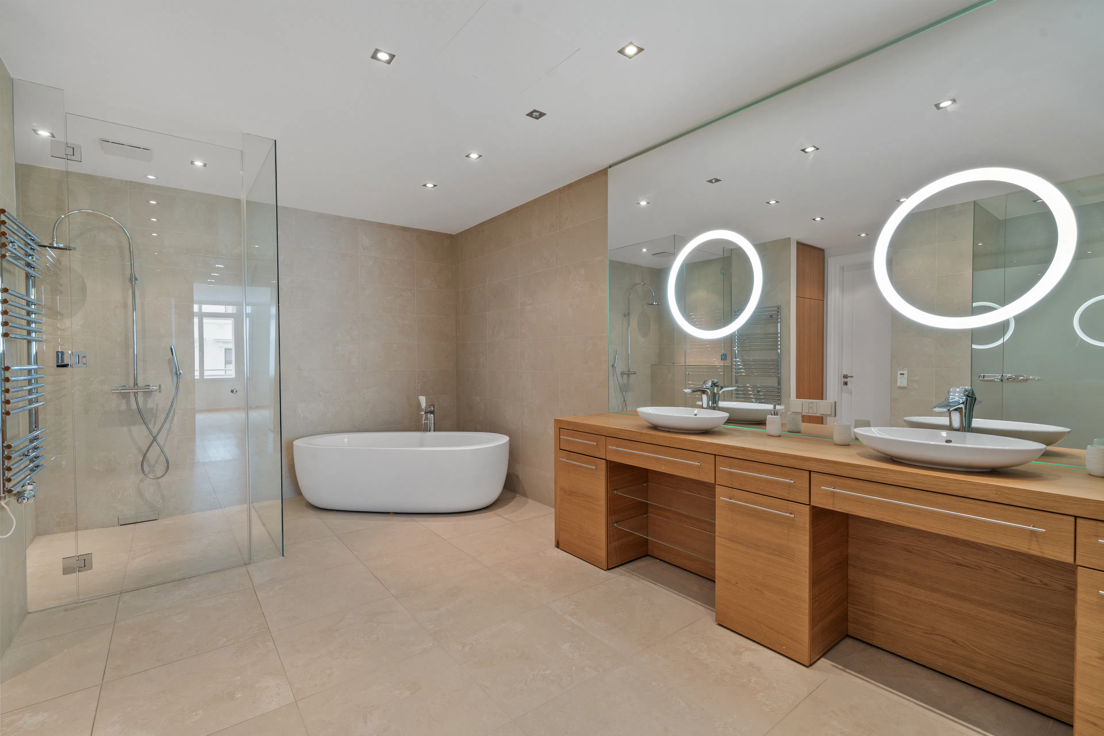 Ein hochwertig ausgestattetes Designerbad mit freistehender Badewanne und Walk-in-Dusche, ein großzügiger Schrankraum sowie ein separater Wirtschaftsraum unterstreichen den hohen Wohnkomfort. Ein Garagenplatz mit bequemem Liftzugang rundet dieses exklusive Angebot ab.